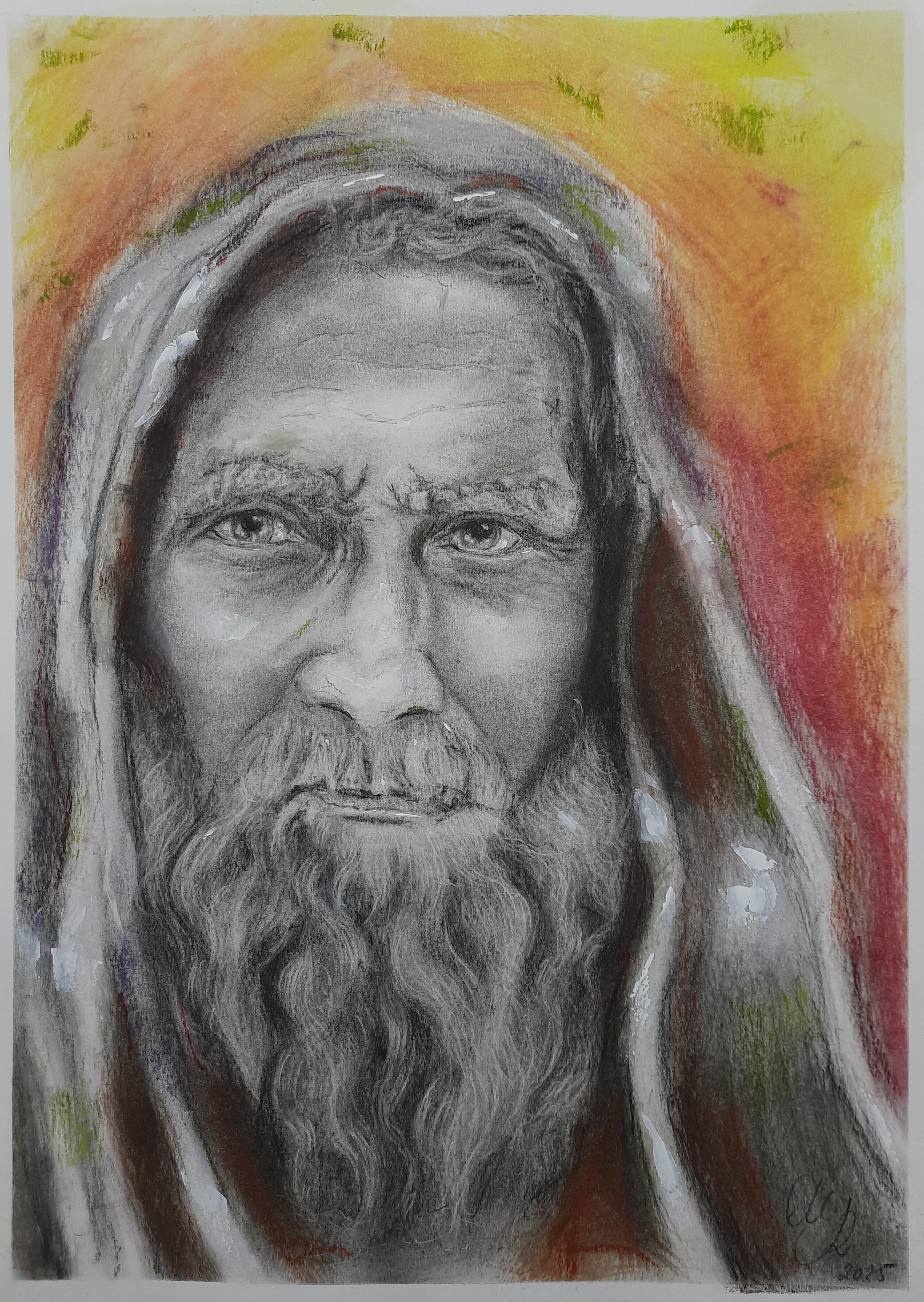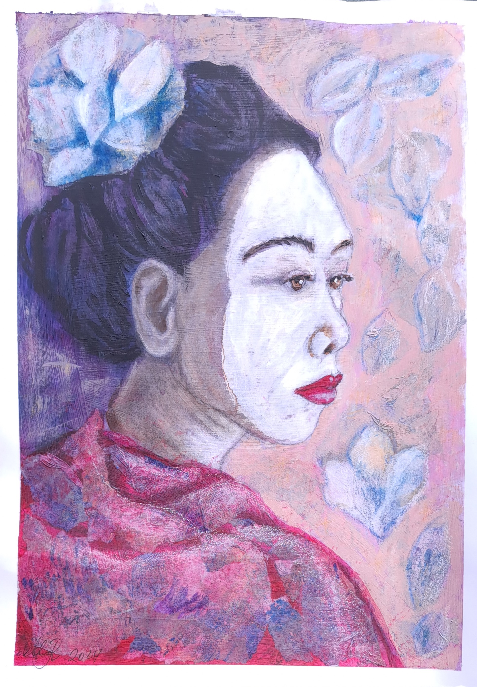 "Geisha" (Masken) A4 Mixed Media 2024 (Kohlestift, Farbstifte, Acryl)